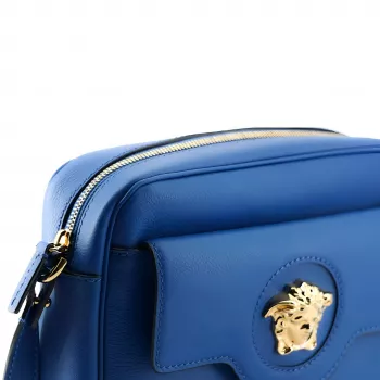 Versace Blue Calf Leather Camera Case Shoulder Bag with Adjustable Strap